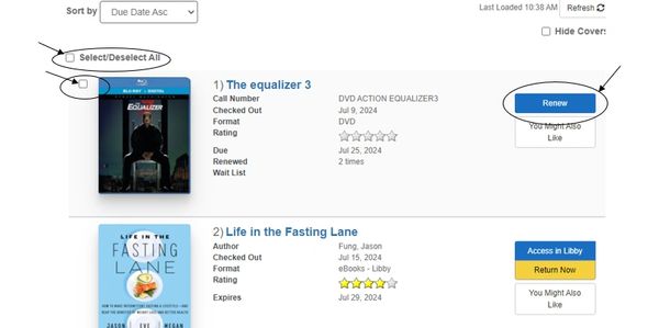 You can also click "Renew All" at the bottom of the page to renew all checked out items.